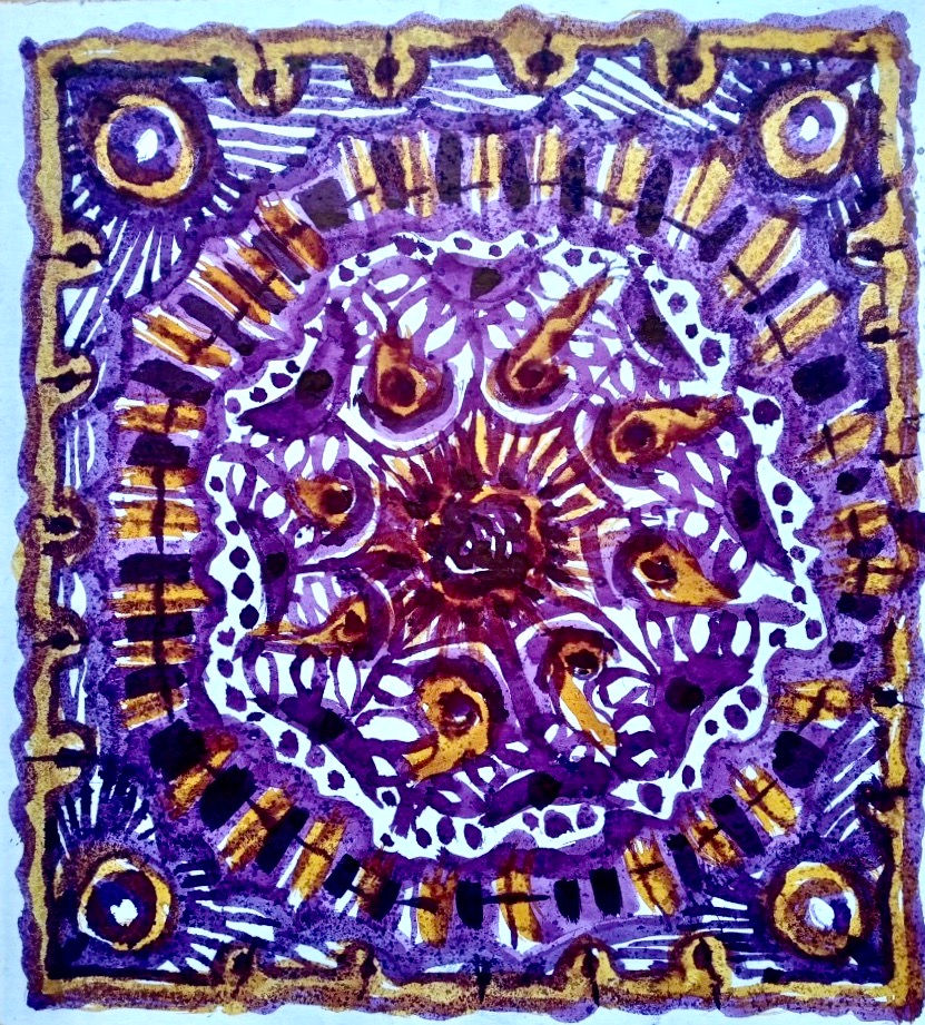 Mandala. Testing earth pigments and Brusho violet. Soot, red ochre, Fuller's earth ground and mulledSpike WoodsOct 9, 20220 min read